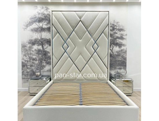 Деревянные царги, обивка на Ваш выбор, цвет молдинга зотоло/серебро, мягкую кровать можно дополнить ножками ( металлические/деревянные).